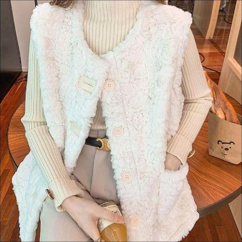 [신상오픈런]여성 양털 조끼 배색 스웨이드 포켓 단추 겨울용 뽀글이