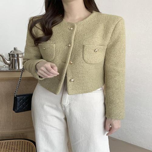 루어스룸 피넛 노카라 골드버튼 하객룩 숏코트 가디건 핸드메이드코트(2color)