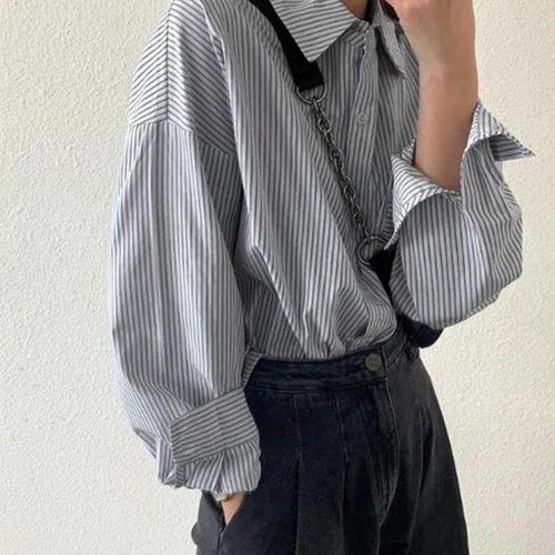 여성스트라이프셔츠 그레이시크