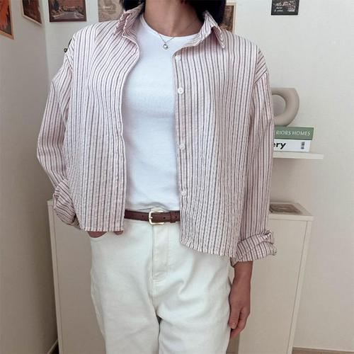[신상오픈런]여성용 스트라이프 크롭 셔츠 카라넥 봄 데일리룩 (45899829)