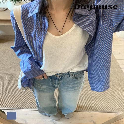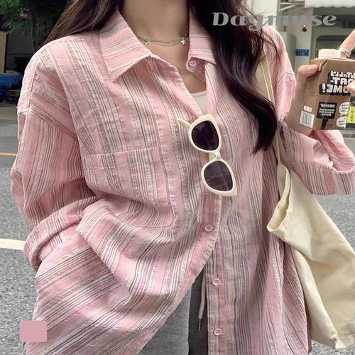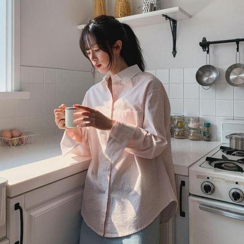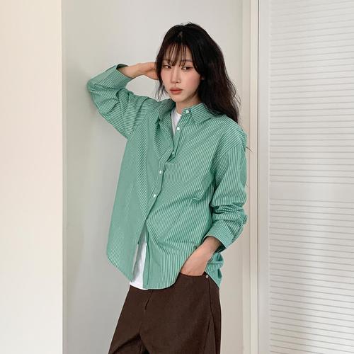 [옷자락]여자 데일리 캐주얼 루즈핏 스트라이프 카라 셔츠