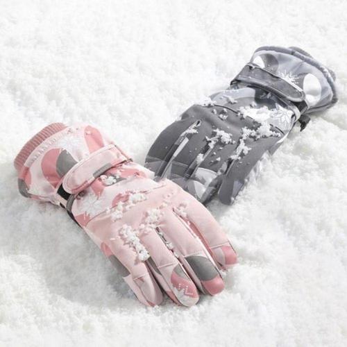 여성용 겨울 스마트터치 방한 패딩 스키장갑 눈꽃 디자인 WFKOLQ1