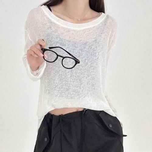 [엄지척]크롭 여성 니트 여름 가을 여자 시스루 긴팔 니트티 A_19680500_667501