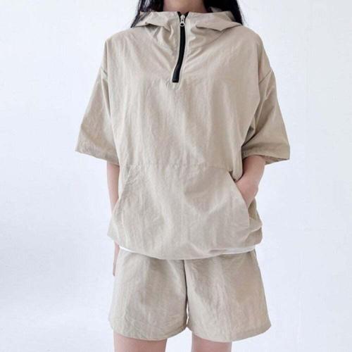 스콰즈 여성 여름 아노락 하프집업 스트링 반팔 트레이닝 후드세트 SFREE002