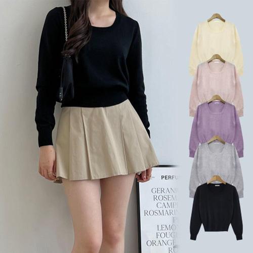 캐쥬얼 여자니트티 기본핏 정장 니트 대학생 라운드