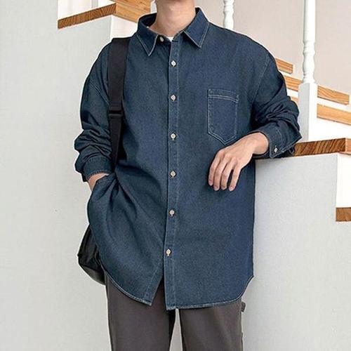 [셀러허브_여성트랜드패션]캐주얼 기본 데님셔츠 남녀공용 커플룩 청남방 루즈핏