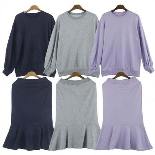맨투맨 캉캉 롱치마 투피스 세트 루즈핏 (OPS-1056)