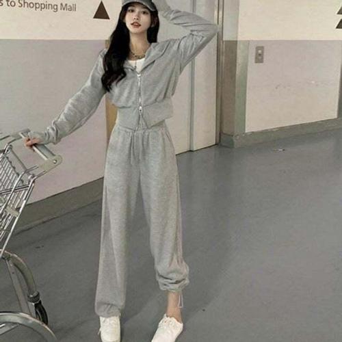 [셀럽하우스]스트링 ZJFD6007 여성 밑단 핑거홀 투웨이 지퍼 추리닝 세트 여