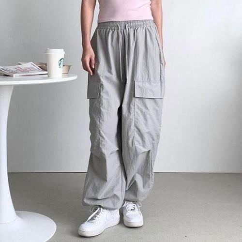 여자 와이드 조거팬츠 카고바지 벌룬 스트링 나일론