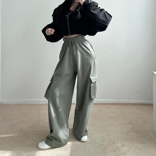 [다잇템]여자 고무줄 아메카지 넓은 롱 트랙수트 바지 (11033042A)