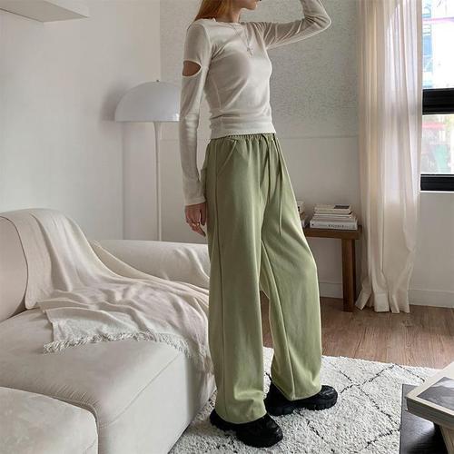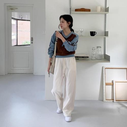 [다잇템]여자 트랙수트 넓은 라운지팬츠 미색 팬츠 (10979955A)