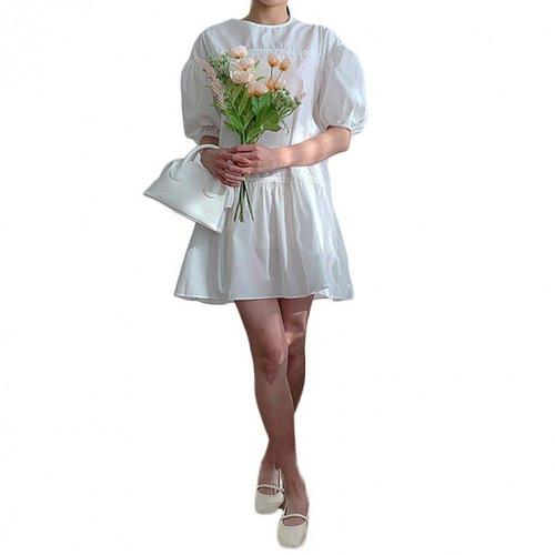[오너클랜]인기상품 화이트 펀칭 미니 플레어 A라인 반팔 원피스 루즈핏 화사한 데일리룩 [WFLL7A8_260304]