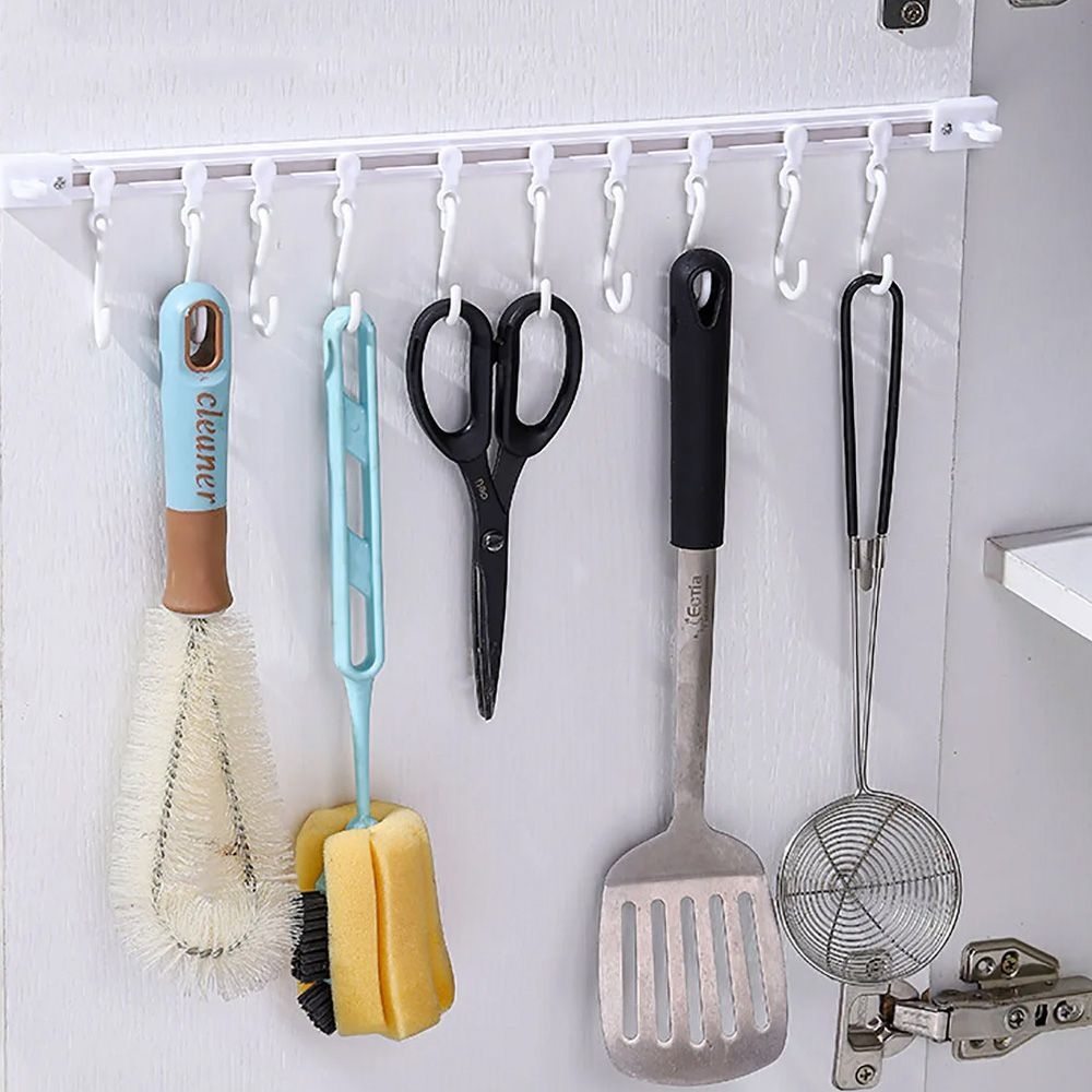 접착식 조리도구 걸이 레일형 주방 컵 국자 거치대 싱크대 선반 후크 정리대 수납 소품 꽂이