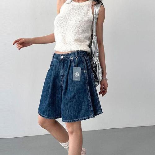앤샵 4부 데님 반바지 여성용 여름 핀턱 주름 숏팬츠(2color)
