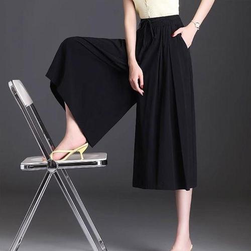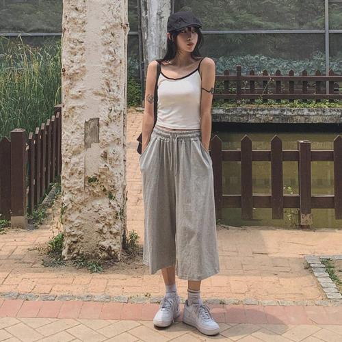 [다잇템]여자 컷오프 넓은 아메카지 칠부 고무줄 바지