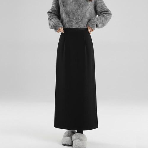 (스타일하우스) 스커트 치마 SK 따뜻한 여성 벨벳 롱 기모 H라인 뒷트임 밴딩