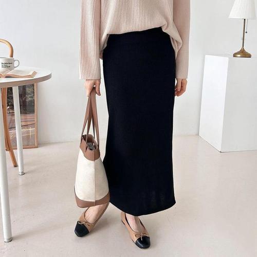 화지나무 오피스룩 H라인 뒷트임 밴딩 롱 스커트