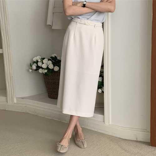 라이쿠 벨트 H라인 뒷밴딩 롱 스커트 cpsk7398k58