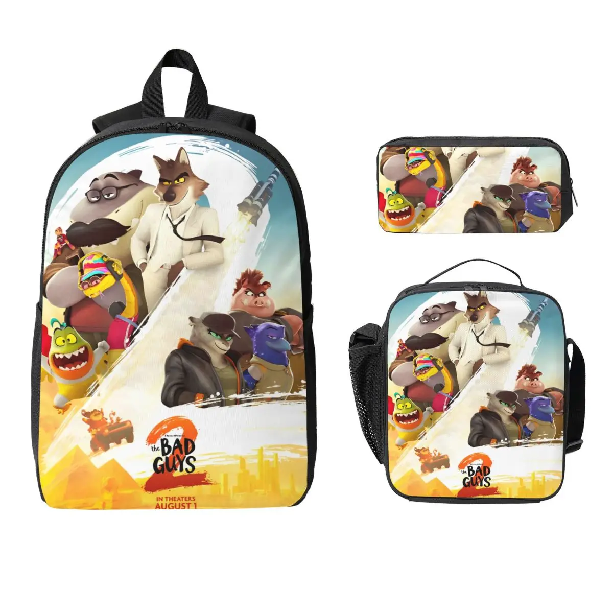 3종 세트 나쁜 남자 배낭 세트 (여아/남아용) 펜 케이스, 책가방, 도시락 가방 포함 초등학생용 데이팩
