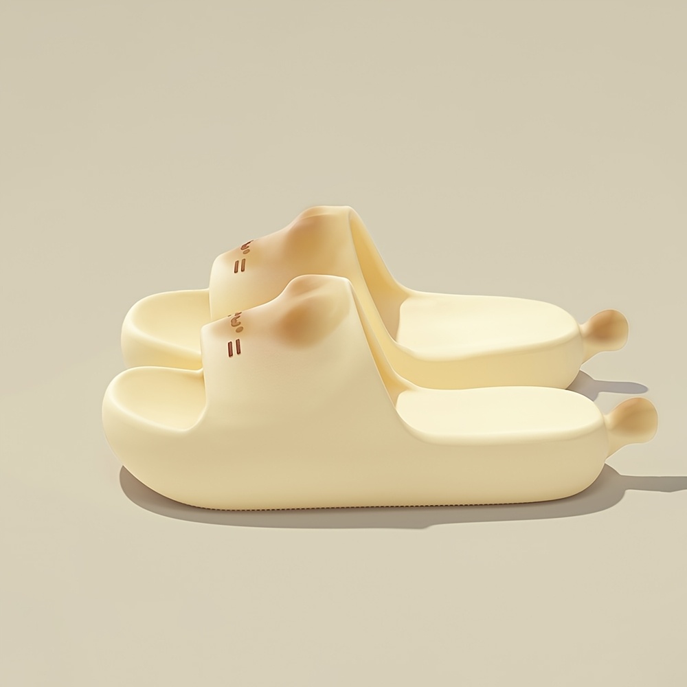 TEMU 신상 출시 노란 고양이 테마 EVA 슬리퍼 남녀 공용, 3D 만화 고양이 얼굴 디자인. 부드럽고 두꺼운 바닥, 미끄럼 방지 기능, 가벼운 디자인으로 실내외 모두 사용에 적합, 여성 신발