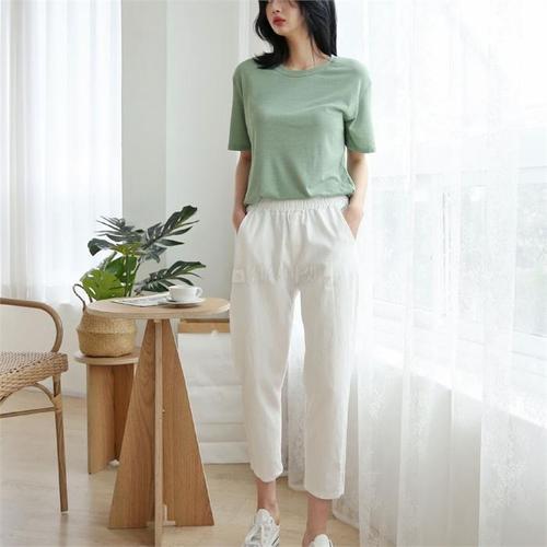 [다잇템]여자 탱크 면원단 이지 H라인 스판바지 고무줄 바지 (7625415A)
