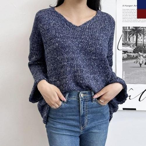 [HYIJUMCD_4B]2LUND 5075 여자브이넥 심플기본니트 라