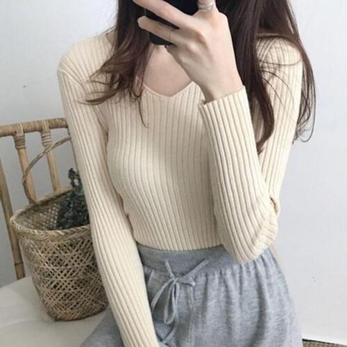 [끌레아]캐주얼 여성 가을 겨울 브이넥 골지 니트 긴팔 티셔츠 여성상의 여자상의 블라우스 오픈