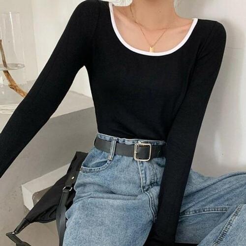 [끌레아]여성 기본 크롭 스타일 넥라인 포인트 긴팔 티셔츠 가을 니트 여성상의 겨울 여자상의