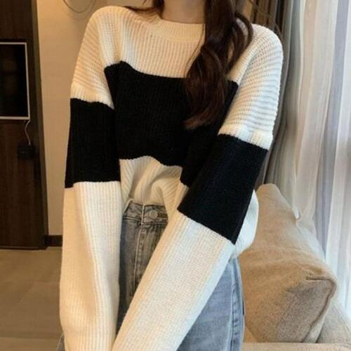 [끌레아]캐주얼 여성 배색 포인트 루즈핏 라운드 니트 티셔츠 여성상의 여자상의 맨투맨 긴팔 기모