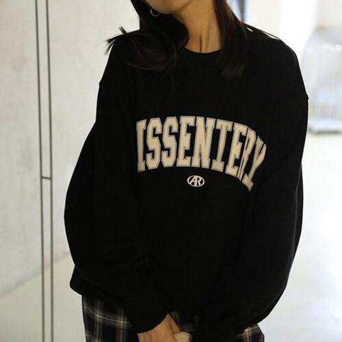 데일리앤 슈피 여성 레터링 프린팅 트임 라벨 맨투맨 가을 쭈리 면 티셔츠 루즈핏 스웻셔츠