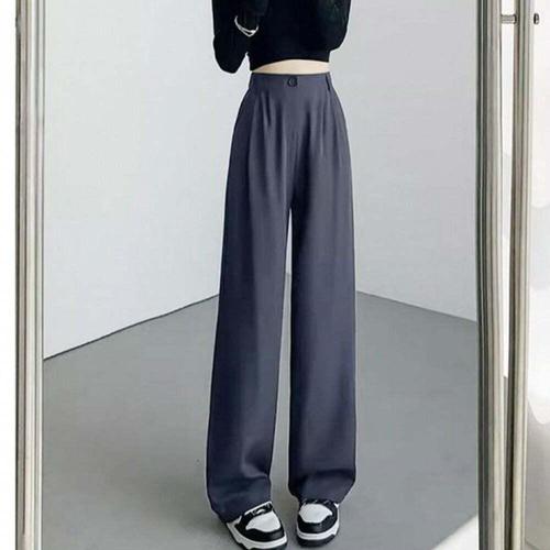 여성 느슨한 봄 여름 2025 새로운 높은 허리 넓은 다리 슬림 캐주얼 바지 한국 패션 트렌드 여성 정장 스트레이트 바지