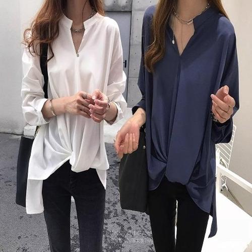 [엄지척]여자 차이나카라 V넥 언발란스 루즈핏 블라우스 셔츠_19660054_667501