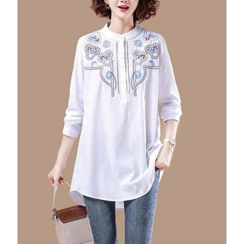 [엄지척]여성 봄 간절기 자수 차이나 카라 롱 셔츠 블라우스_19642764_667501