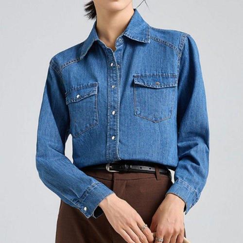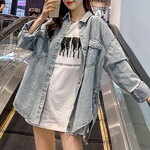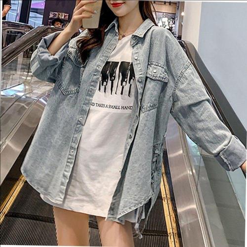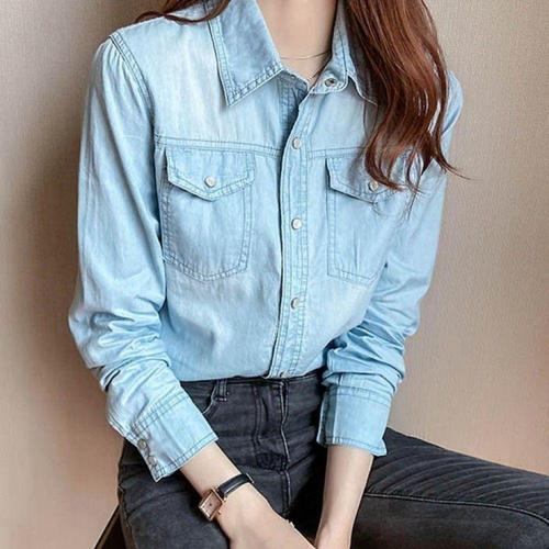 [오너클랜]인기상품 여성용 봄가을 데님 셔츠 얇은 청남방 청색 캐주얼 데님셔츠 [WFLLARN_260304]