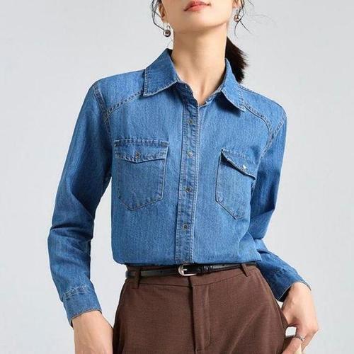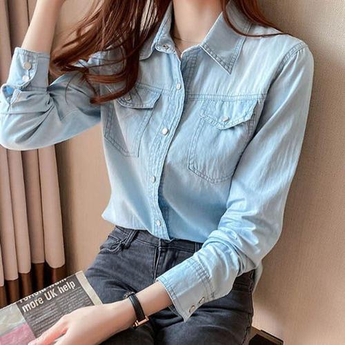 [셀러허브_여성트랜드패션]여자 스타일 캐주얼 셔츠 데님 청남방 긴팔 베이직