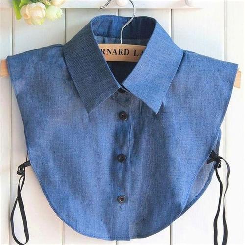 [셀러허브_여성트랜드패션]여자 데님 레이어드 페이크 카라 가짜카라 진청 셔츠