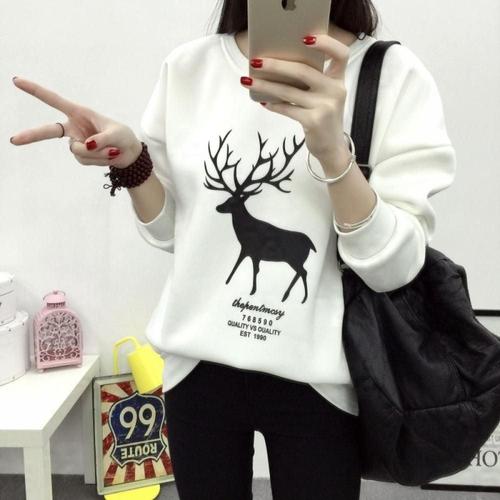 기모 여성긴팔 사슴 티셔츠 포인트 여성 가을옷 WFKOJ5I