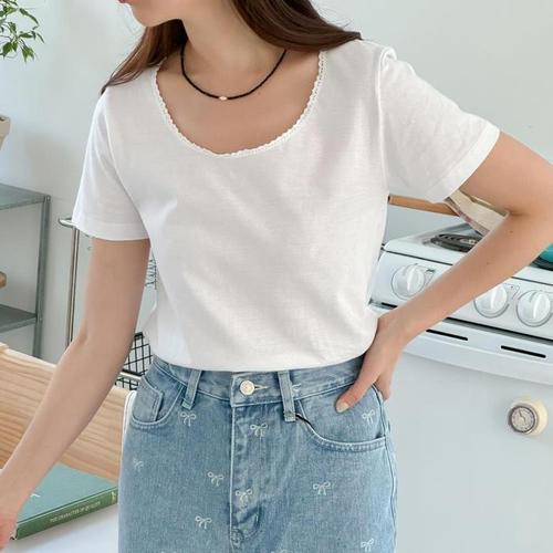 여자기본반팔티 티셔츠 레이어드 반팔 여름 루즈핏 반 WD7DD5A