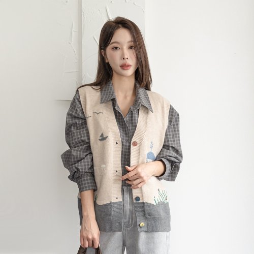 [모노무드]모노무드 심플 오버핏 브이넥 니트베스트 셔츠 레이어드 출근룩