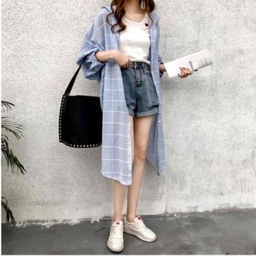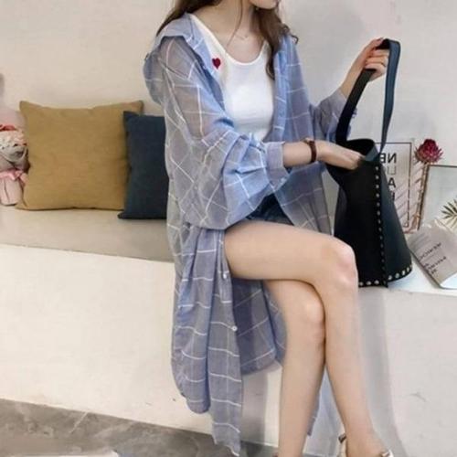 [엄지척]블라우스 롱기장 롱셔츠 롱남방 후드롱셔츠 셔츠 체크_19652365_667501