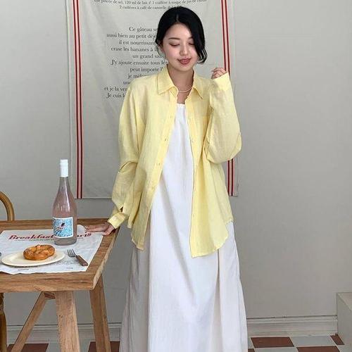 여성 여름 패션 시원한 린넨 롱 루즈핏 원피스 셔츠