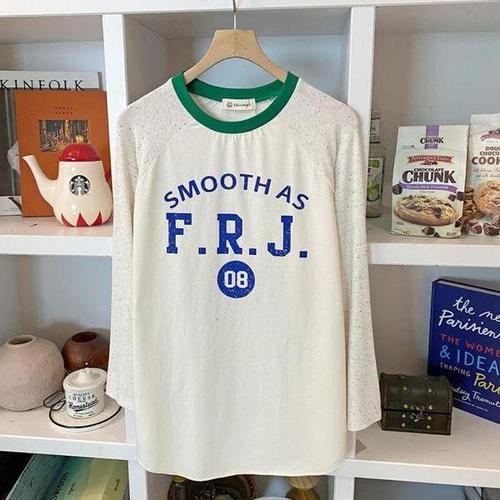 [다잇템_패션]여성 필기체 U넥 콘트라스트 면티