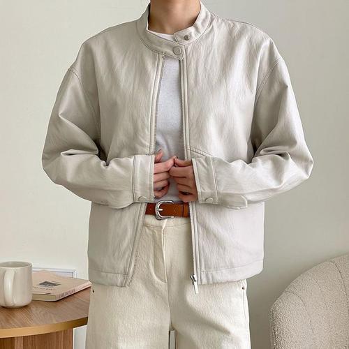 ONM 부드러운 레더 재킷 카라넥 오버핏 바이크 아우터