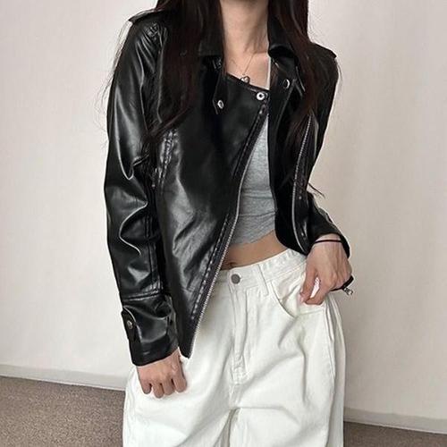 [에이치플러스몰]여름 캐쥬얼 가죽점퍼 바이크 가죽 여성자켓 코디 봄