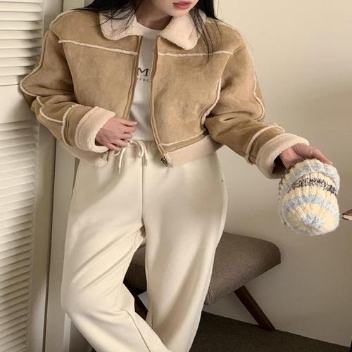 [샵앤]여성 반목 바이크 스웨이드 자켓 MSE-WJP-20823-베이지