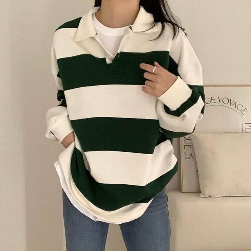 [유야]여성 면 단가라 카라 긴팔 티셔츠 박스티 -FTS1068- 봄 가을