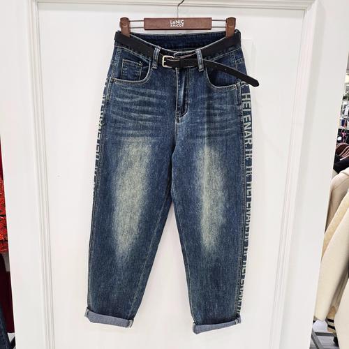 [옷자락]여성 봄바지 워싱 뒷밴드 배기진 스판 일상 청바지