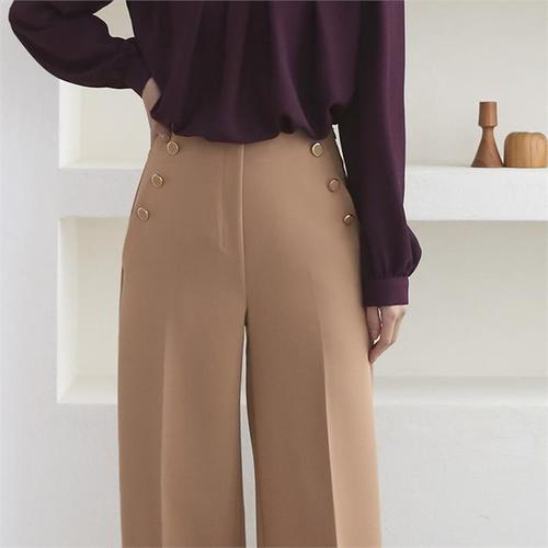 [다잇템]여자 넓은 셋업 단추 와이드팬츠 편한 정장바지 (7608402A)