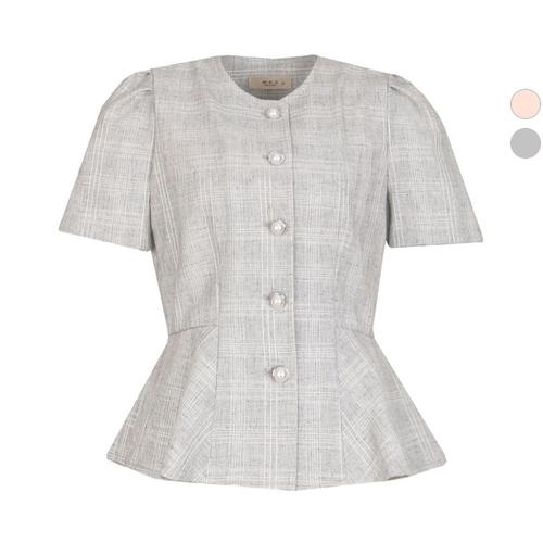 여자 배색 체크 포켓 단추 여름 린넨 미니 자켓