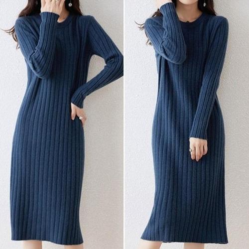 [엄지척]라운드넥 니트 미디 원피스 골지 겨울 이너 4color_19952496_667501